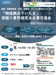 「ホワイト物流」推進運動では、埼玉しごとセンターと連携し、「物流拠点さいたま」深掘り業界研究&企業交流会を開催します!