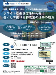 【1/31(土)イベント】「ホワイトな働き方を叶える!安心して働ける物流業の仕事の魅力」セミナー(in大阪)開催のお知らせ